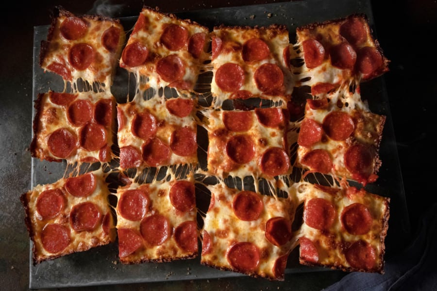 Detroit-Style deep dish pizza only. Premium Mozzarella & Your Choice of Toppings
