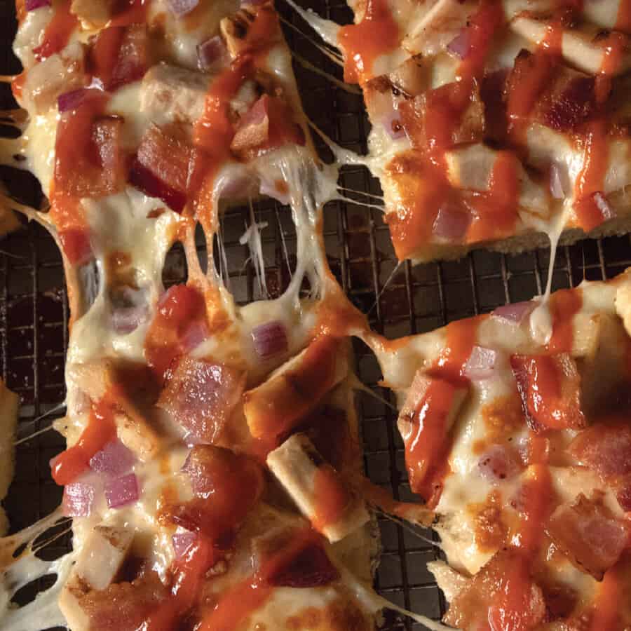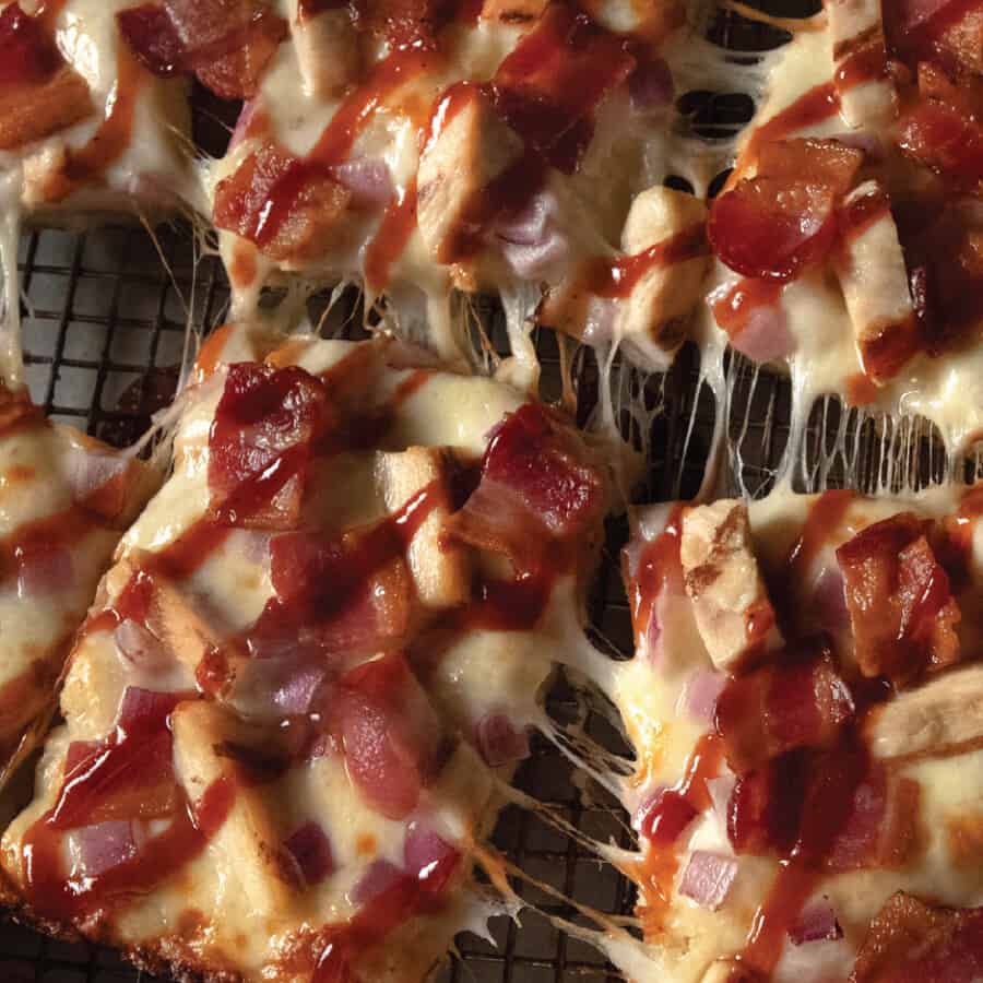 BBQ sauce, premium mozzarella, grilled chicken, bacon & red onions