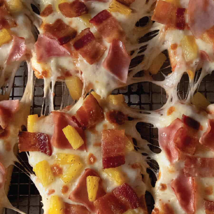 Pizza sauce, premium mozzarella, ham, bacon & pineapple